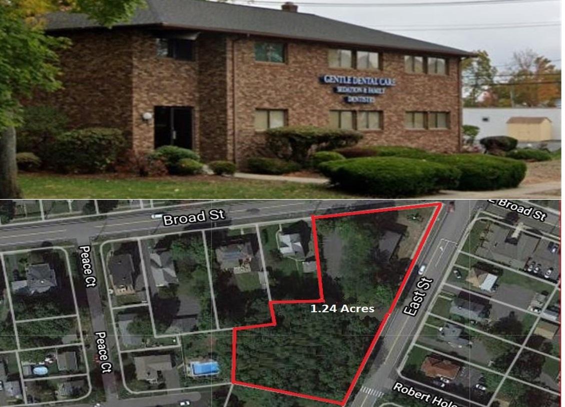 At a lighted intersection on East St, (Route 10) and Broad St with curb cut access on both. 3,352 total SF, 1,676 per floor. 2 floors, 2nd floor has been left vacant Full basement 9’ceilings with utilities metered to 1st floor tenant additional storage space available for 2nd floor tenants Acres: 1.24, Heating: Gas Hot Air, Public Water, Sewer & Gas, 397 Ft Frontage:. Zone: GC Taxes: 15,242 Traffic Count: 14,200 Year Built:1981 Also sold separately $549,000(for building) and $300.000, (for lot).