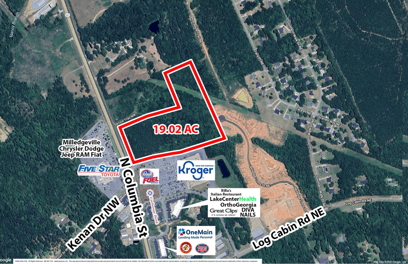 This 19.02-acre site offers an exceptional opportunity for retail, office, medical, or multifamily development. With approximately 500 feet of frontage on North Columbia Street (Highway 441) and 37,500 vehicles per day, this property boasts outstanding exposure and easy access. Kroger and adjacent development have a great tenant mix. With unbeatable visibility, and a powerful commercial neighbor mix, this site is development-ready and perfectly positioned.