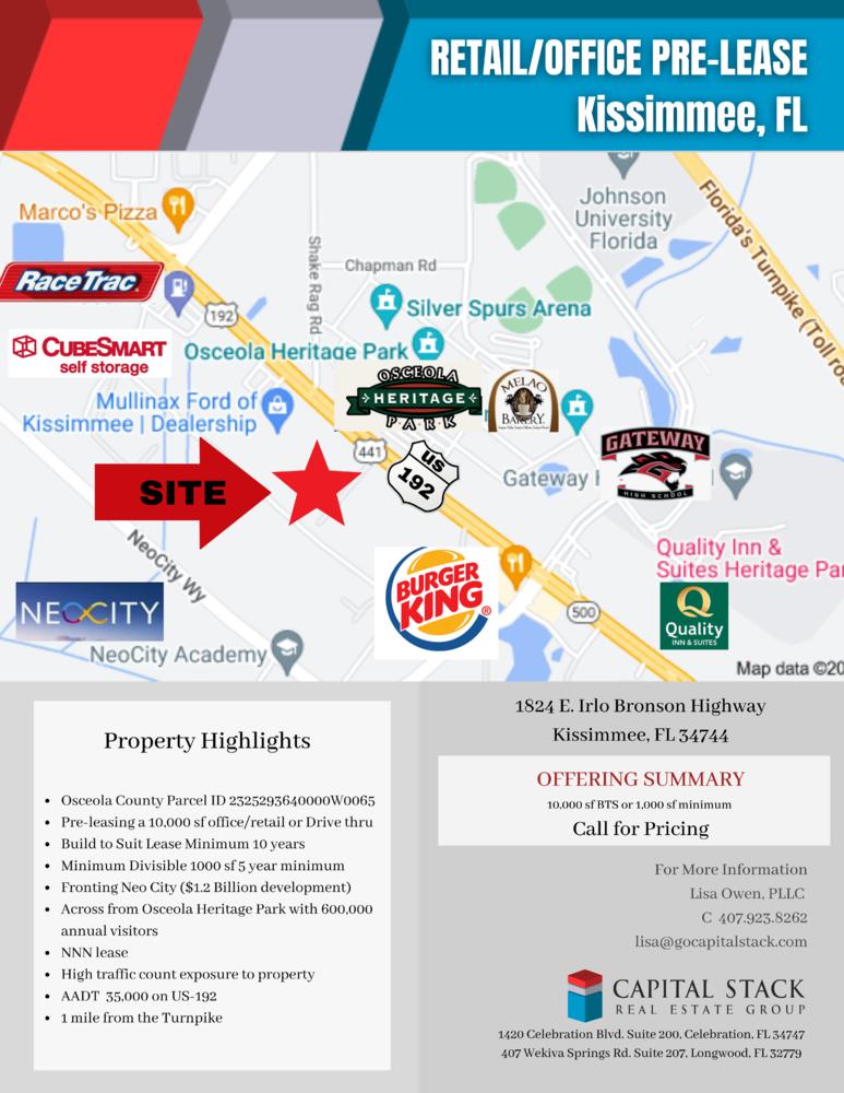 Across from Osceola Heritage Park with 600,000 annual visitors NNN lease