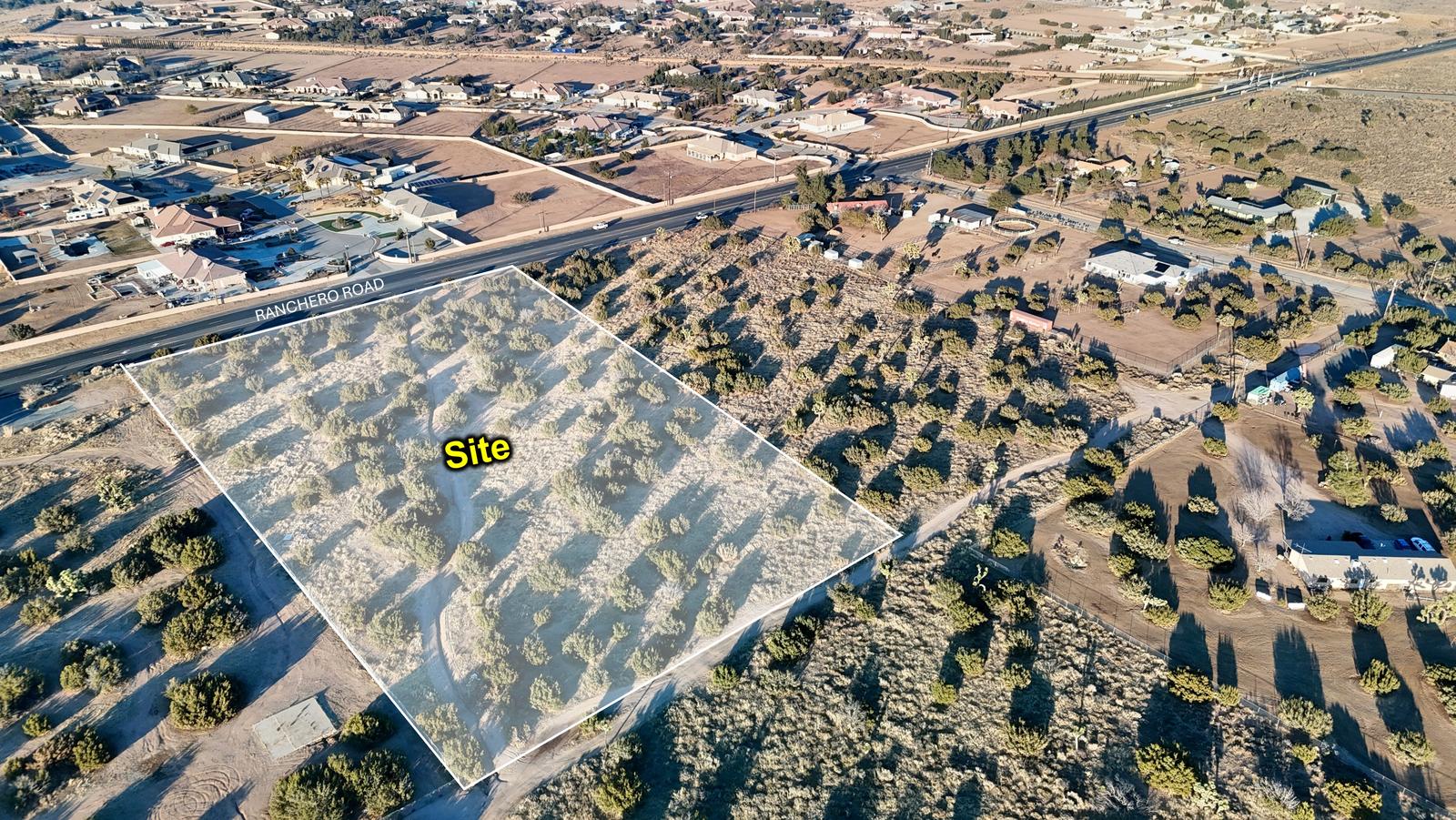 Located less then half a mile east of the I-15 and Ranchero Road interchange. The subject property is located a little over 1 mile away from Oak Hills High School which has ±2,500 enrolled students grades 9-12. Located along a stretch of Ranchero Road that is currently undergoing a lane widening project between the BNSF bridge to I-15 at an estimated total cost of ±$54 million dollars. Located southeast of a ±3,267,000 industrial development that includes three separate buildings in which one will be occupied by Modway, a furniture manufacture. Development has started on a ±9,633-ac master-planned community, the “Silverwood” project that is approved for ±15,633 homes with the first phase projected to open in the third quarte of 2024 with 470± lots and is located a little over seven miles east of this property. Power, Water, Gas, and Fiber are all in Ranchero Rd directly in front of the parcel and will accommodate a commercial development (buyer to verify)