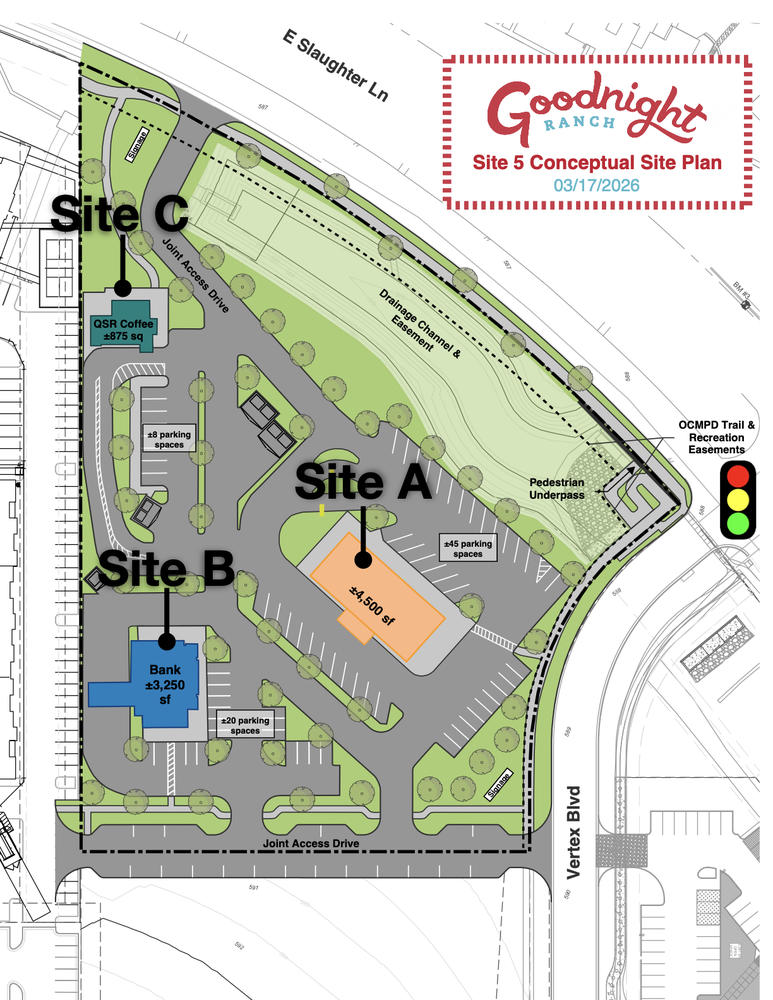 - Hard corner location at the SWC of E. Slaughter Ln. & Vertex Blvd.