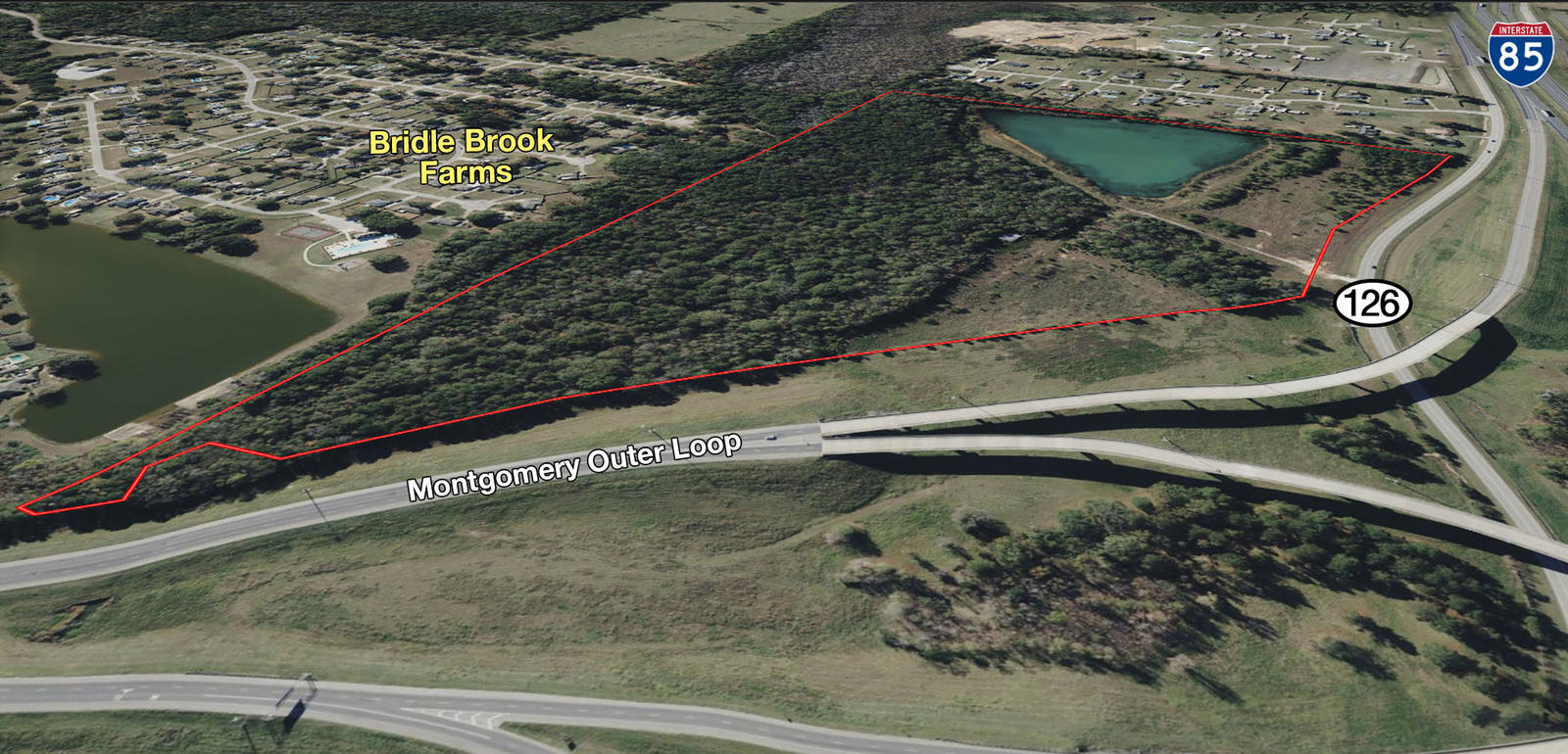 This +/- 64.2-acre property, offered as an entire parcel, is located at the I-85 Outer Loop Interchange and U.S. Highway 80/AL Highway 126. Excellent potential for light industrial or commercial zoning. Property includes a +/- 7,000 S.F. barn and +/- 9-acre lake. Contact John Stanley, CCIM, at (334) 2712475 for more information.